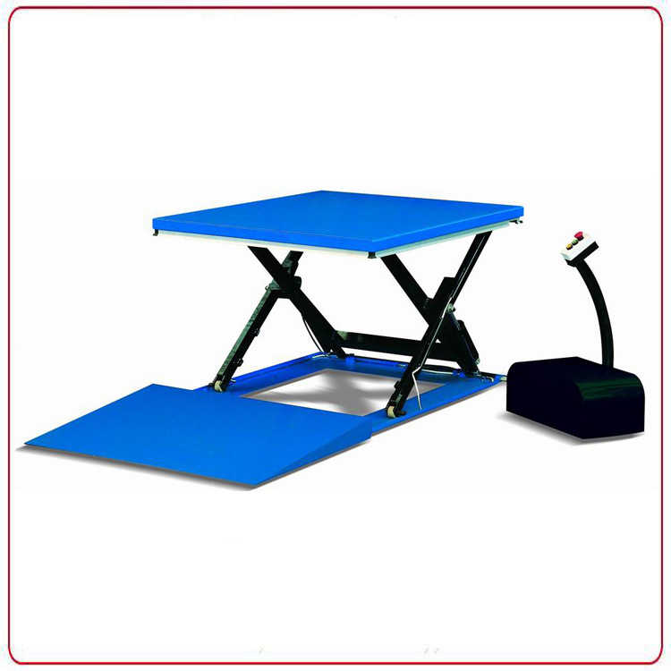 超低升降平臺的主要特點是:超低臺面高度,便于托盤車卸貨,不需要挖坑埋地。 借助斜坡,液壓搬運車可以將棧板(托盤)直接放置到平臺上,然后退出液壓搬運車,平臺就可以載著棧板(托盤)上升。主要應用于生產車間,倉庫等有高度差,有不方便挖地坑的場所。